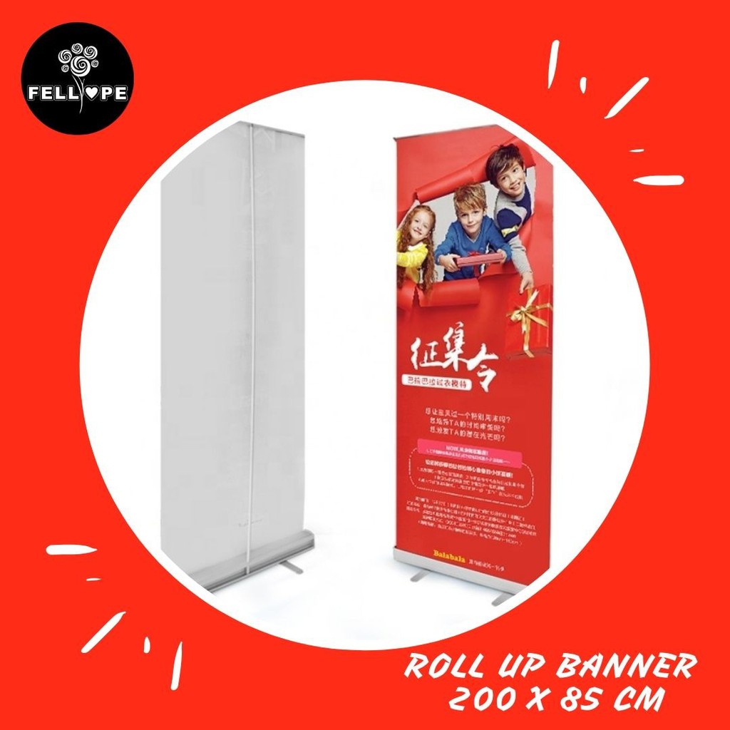Cetak Roll Up Banner Plus Tiang Bahan Super 440gr Ukuran 60x160cm Banner Usaha Wisuda Toko Shopee Indonesia